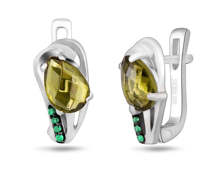 Серьги, арт.656268 Серебро Серебро 925, 2,57 гр., оливковая шпинель , наноизумруд