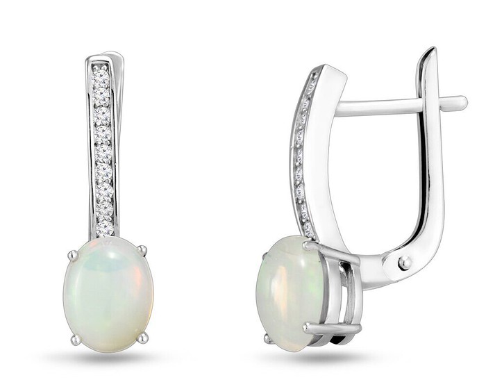 Серьги, арт.655048 Серебро Серебро 925, 3,04 гр., опал нат. белый