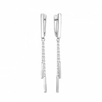 Серьги-продёвки длинные серебро в форме клевер с фианитом родированное коллекция