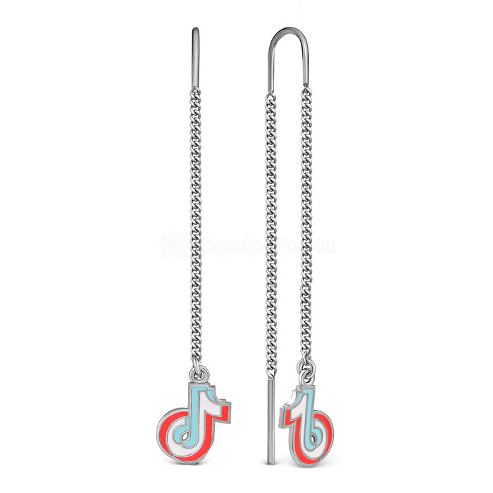 Серьги-продёвки из серебра с эмалью родированные 925 пробы Пс-2р