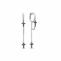Серьги-продёвки из серебра с фианитами родированные 925 пробы С-2701р00