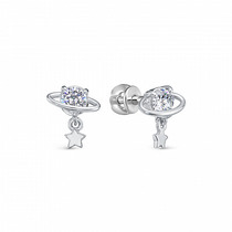Серьги-продёвки из золочёного серебра с нат.рубином и родированием