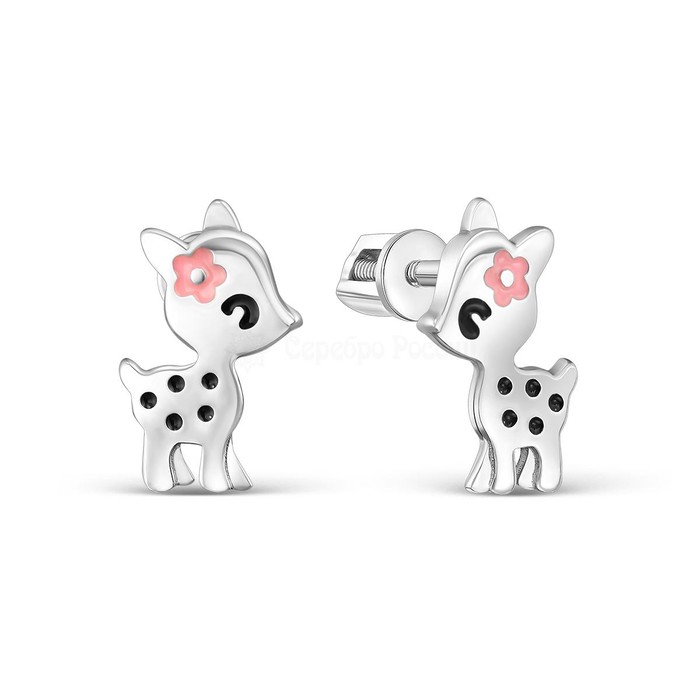 Серьги-пусеты детские из серебра с эмалью родированные - Оленёнок 925 пробы пс-0