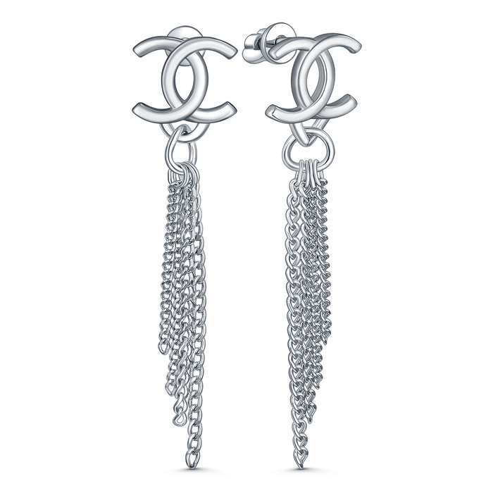 Совместные покупки Нижневартовск Ювелирные украшения и бижутерия Серьги — Серьги-пусеты длинные с цепями из родированного серебра 925 пробы с-0122р