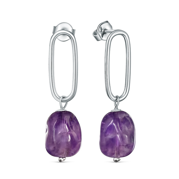 Серьги-пусеты из серебра с аметистом родированные 925 пробы 18991AMRH