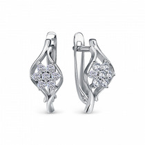 Серьги-пусеты из серебра с фианитами родированные