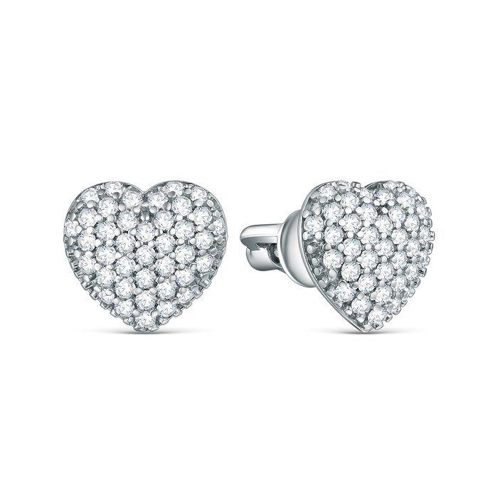 Совместные покупки Нижневартовск Ювелирные украшения и бижутерия Серьги — Серьги-пусеты из серебра с фианитами родированные - Сердца 925 пробы 2-144р200
