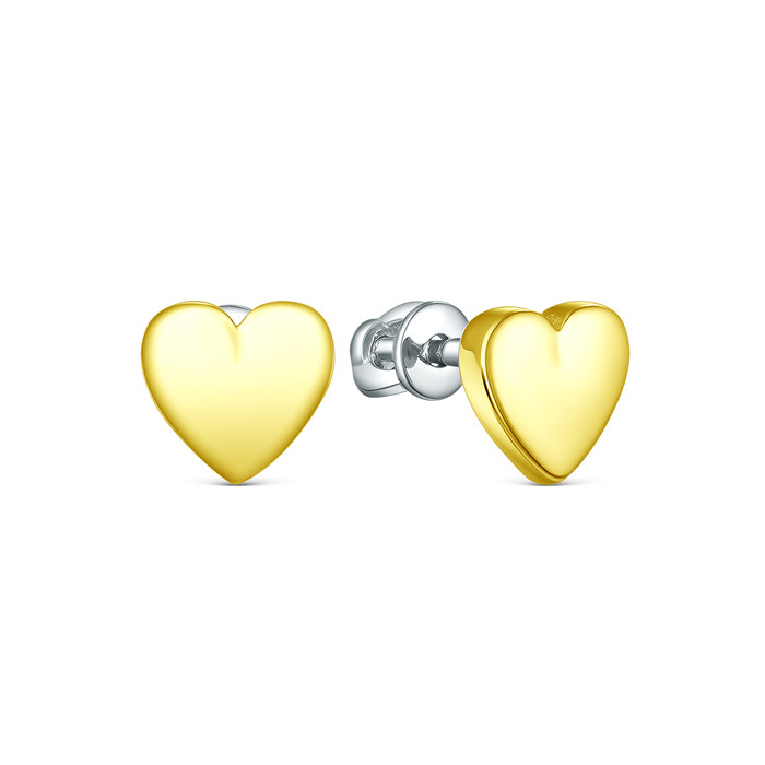 Совместные покупки Нижневартовск Ювелирные украшения и бижутерия Серьги — Серьги-пусеты из серебра с золочением родированные - Сердца С5683рз