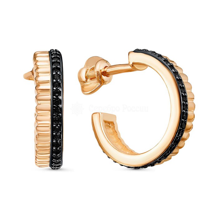 Серьги-пусеты из золочёного серебра с чёрными фианитами и родированием