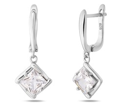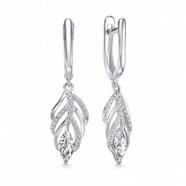 Серьги с фианитом родированные серебро 925*
