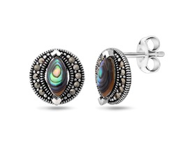 Серьги, марказит , перламутр зелёный, SL-LNJ350
