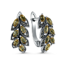 Серьги из чернёного серебра с султанитами и марказитами 925 пробы HE1753-ZN-LK
