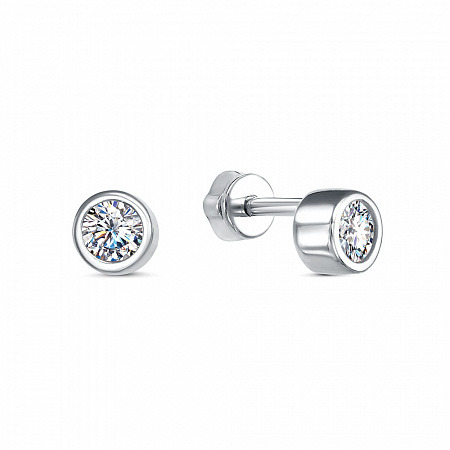 Серьги с фианитом родированные серебро 925*
