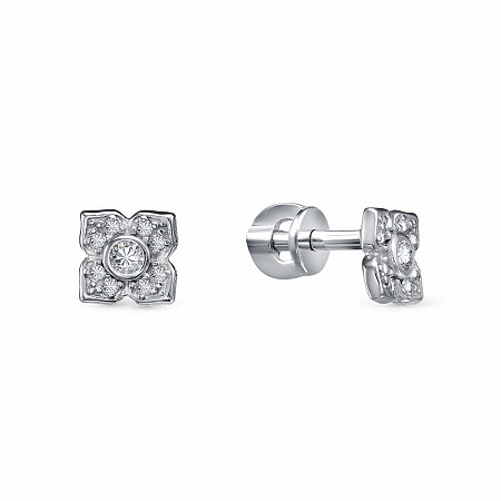 Серьги с фианитом родированные серебро 925*