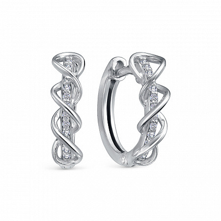 Серьги с фианитом родированные серебро 925*