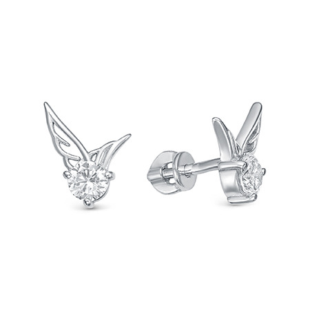 Серьги с фианитом родированные серебро 925*