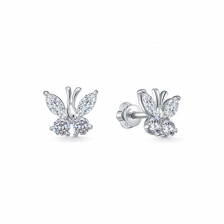 Серьги с фианитом родированные серебро 925*