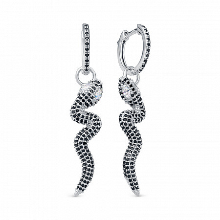 Серьги с фианитом родированные серебро 925*