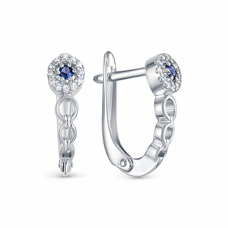 Серьги с фианитом родированные серебро 925*