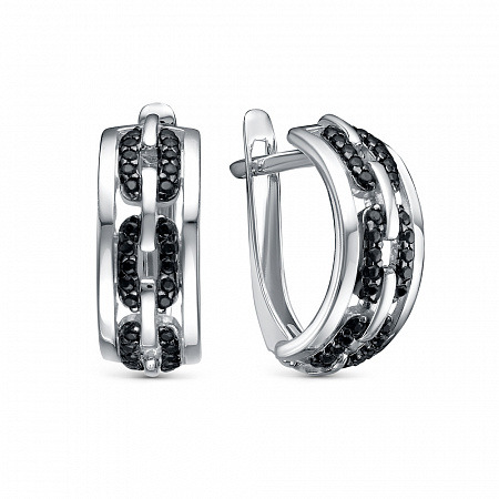Серьги с фианитом родированные серебро 925*
