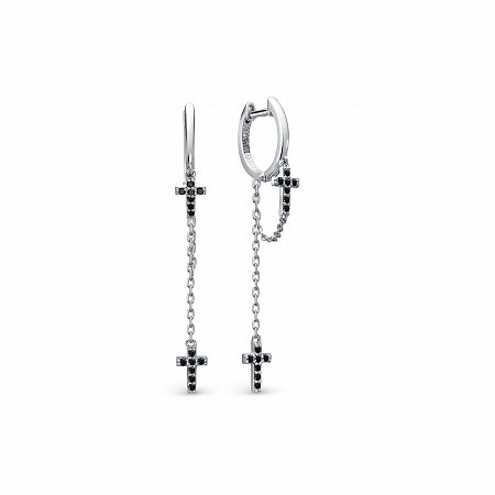 Серьги с фианитом родированные серебро 925*