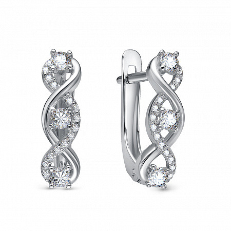 Серьги с фианитом родированные серебро 925*