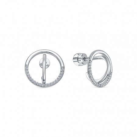 Серьги с фианитом родированные серебро 925*