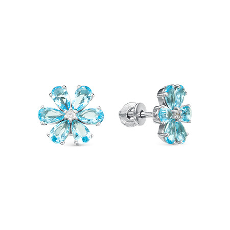 Серьги с фианитом родированные серебро 925*