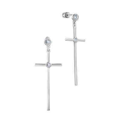 Серьги с фианитом родированные серебро 925*