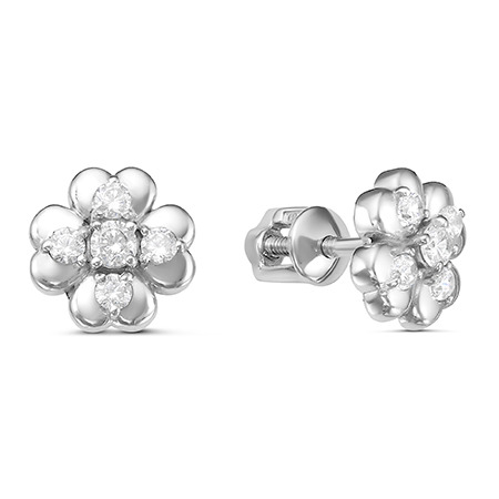 Серьги с фианитом родированные серебро 925*