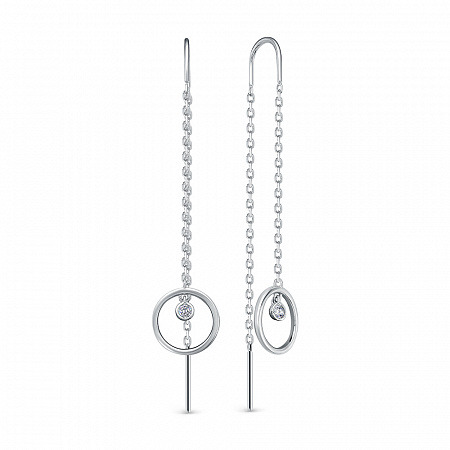 Серьги с фианитом родированные серебро 925*