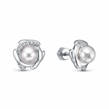 Серьги с иск.жемчугом родированные серебро 925*