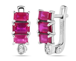 Серьги, 2 рубин корунд октагон 4х6 мм/1.55 ct. , 4 рубин корунд октагон 3х5 мм/1