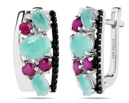 Серьги, изумруд берилл , рубин корунд , шпинель, Изобилие