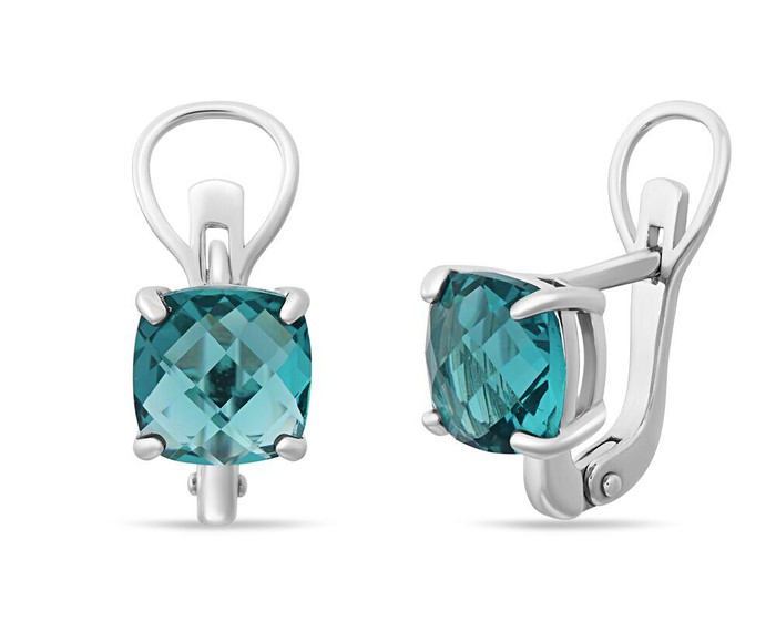 Серьги, арт.656300 Серебро Серебро 925, 3,15 гр., турмалин параиба выращ.