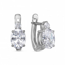 Серьги с фианитом родированные серебро 925*
