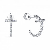 Серьги-пусеты из серебра с фианитами родированные 925 пробы 12-1218р
