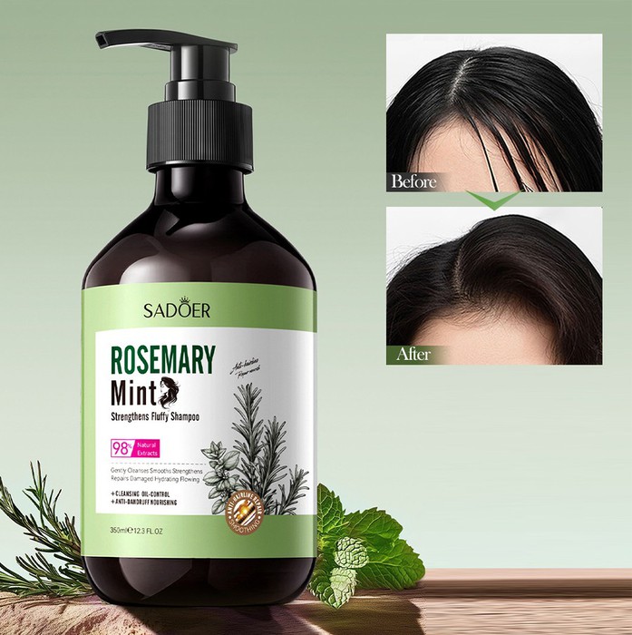 Совместные покупки Нижневартовск Косметика и парфюмерия Прочий макияж — Шампунь против жирности волос с Розмарином и Ментолом Sadoer, 350 мл.