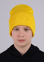 Мягкая двойная шапочка с забавными "ушками" на макушке. Верхний слой связан из полушерстяной мериносовой пряжи, нижний связан из мягкой акриловой пряжи, утеплитель - изософт. Аккуратные удобные завязки без узлов и наконечников. Спереди лейбл - мишка.
