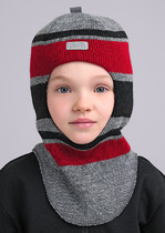 Теплый зимний шлем для мальчиков. Верхний слой связан из полушерстяной мериносовой пряжи, подклад выкроен из хлопкового полотна и полностью пришит, утеплитель изософт по всему шлему (кроме манишки). На макушке небольшой помпон. На манишке пришит фирменный лейбл. Вырез вокруг лица обработан эластичной бейкой по специальной технологии и не вытягивается в процессе носки. Ребенок может спокойно вертеть головой. При этом шлем не закроет глаз, оголив ухо.