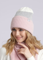 Шапка женская однослойная с отворотом, без подклада. Выполнена из высококачественной пряжи, декорирована стильной нашивкой. Станет не только отличной защитой от холода, но и модным аксессуаром.
