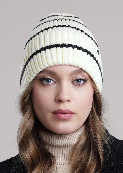 Шапка женская однослойная с отворотом, без подклада. Выполнена из высококачественной пряжи, декорирована стильной нашивкой. Станет не только отличной защитой от холода, но и модным аксессуаром.