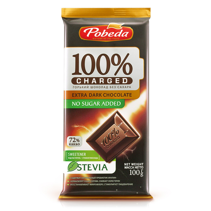 Шоколад ПОБЕДА Charged Горький (без сахара)