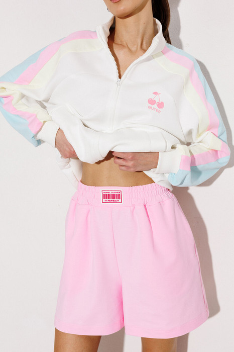 Шорты трикотажные (2-хнитка) на притачном отстроченном поясе с нашивкой. Шорты с карманами в боковых швах с наклонным входом и по низу широкая подгибка.
