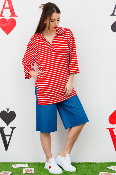 Удлиненные шорты прямого кроя, верхний срез представлен широкой резинкой, с карманами. Низ изделия не обработан.
