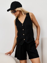 Шорты-бермуды с широкими складками из костюмной ткани (приобрести жакет с фото можно по арт. 6752, жилет арт. 6753).