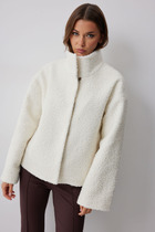 Жакет прямого силуэта из букле на трикотажной основе. Воротник-стойка. Центральная застежка на крючки. Рукав со спущенной линией плеча. По переду прорезные  карманы. Жакет на подкладке. Обращаем ваше внимание, что фурнитура может отличаться от фото.
