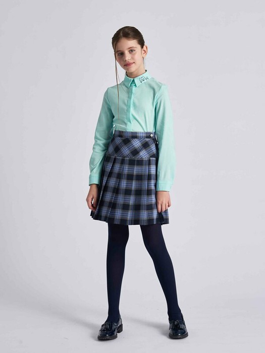 Блузка из смесового хлопка, полуприлегающего силуэта с отложным воротником и длинными рукавами с манжетами. Высокое содержание хлопка в составе обеспечивает отличную воздухопроницаемость и комфорт в повседневной носке. Центральная супатная застёжка на планку с пуговицами. Воротник украшен вышивкой ""кошка"". Отличный вариант для повседневной носки.