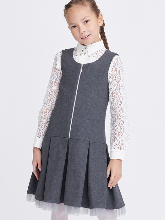 Элегантный сарафан в романтическом стиле из износостойкой поливискозы, отрезной по линии талии с юбкой со встречными складками. Застежка на молнию по центру передней панели. Низ юбки украшен кружевом с фестонами. На спинке талиевые вытачки. Отличный вариант на каждый день.