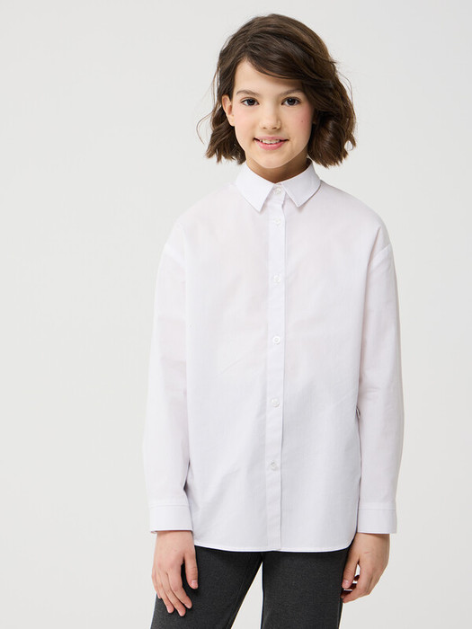 Стильная блузка с отложным воротничком из смесового хлопка свободного силуэта с заниженной линией плеча и длинными спущенными рукавами на манжете с пуговицей. Спинка удлиненная. Центральная застежка на планку с пуговицами. Высокое содержание хлопка в составе обеспечивает отличную воздухопроницаемость и комфорт в повседневной носке. Отличный вариант на каждый день.
